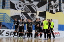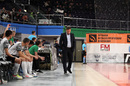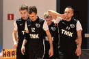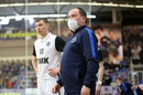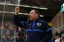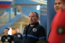 Главный тренер «Синары» Евгений Давлетшин благодарит команду за победу в первой игре 13 тура с КПРФ