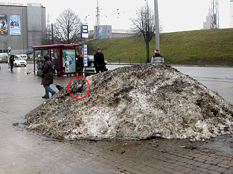 Правда, снег все же отыскался - сгребенным в сугробы и уже облюбованным местными пернатыми.